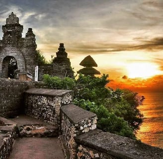 Uluwatu Temple (Pura Luhur Uluwatu): Perched majestically on a dramatic cliff overlooking the Indian Ocean, this ancient temple offers spectacular views, especially at sunset. Don't miss the chance to witness the iconic Kecak Dance performed against the backdrop of a vibrant Balinese sunset – a truly captivating cultural spectacle.